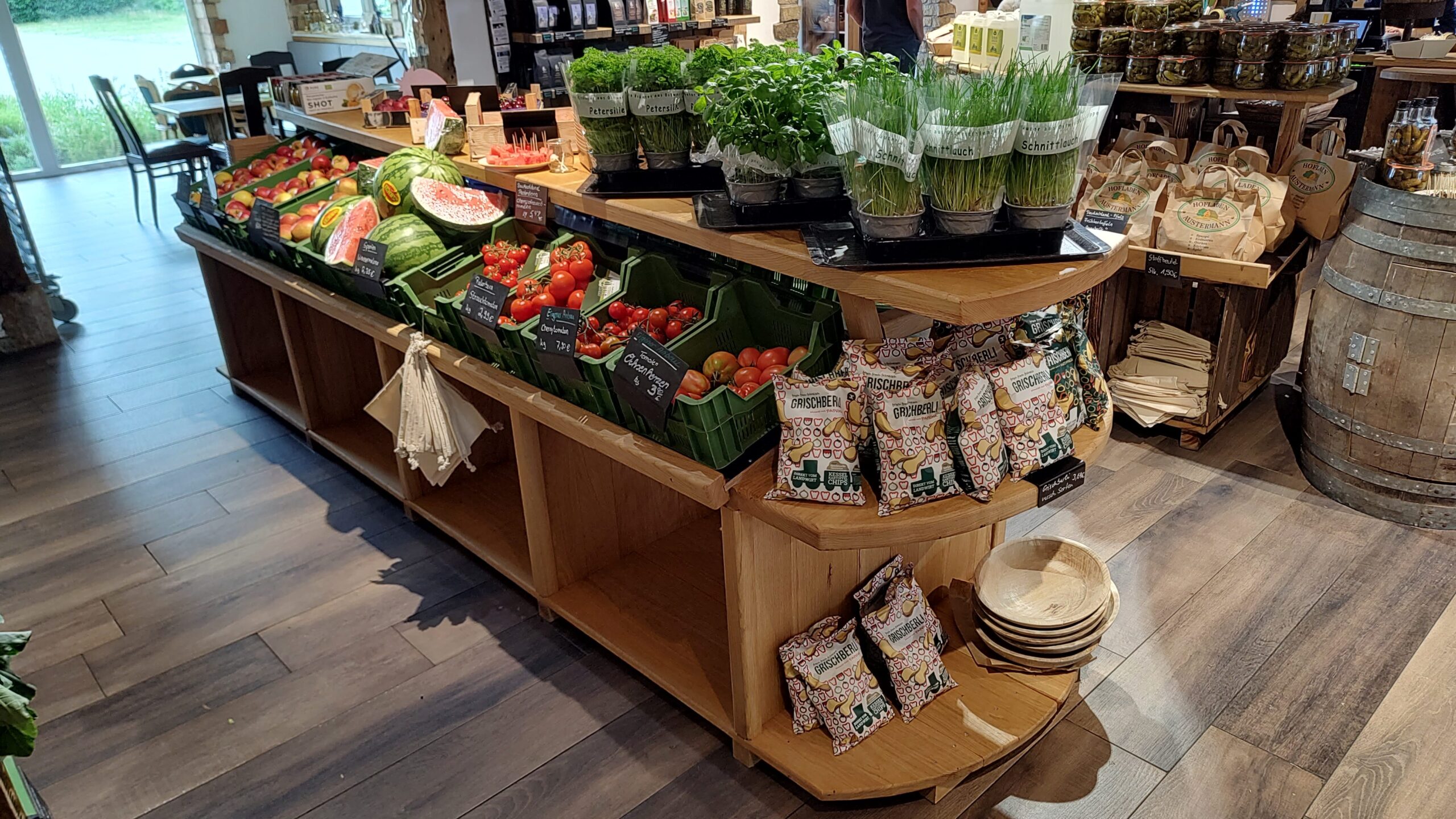 Seit Ende Juni haben wir ein neues Obst- & Gemüseregal im Hofladen, um unsere frische Ware noch besser präsentieren zu können. Johannas Vater Robert hat das Regal in unserer Werkstatt.....