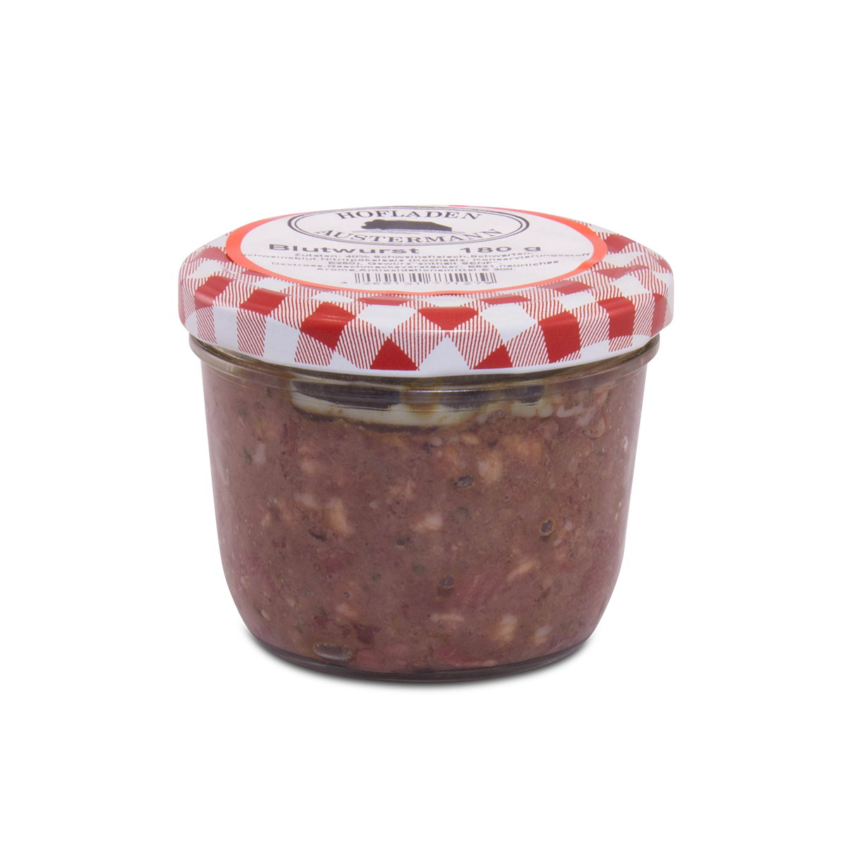 40% Schweinefleisch, Schwarten, Schweineblut, Nitritpökelsalz (Kochsalz, Konservierungsstoff: E250), Gewürze (SENF); Dextrose, Geschmacksverstärker: E621, natürliches Aroma, Antioxidationsmittel: E300