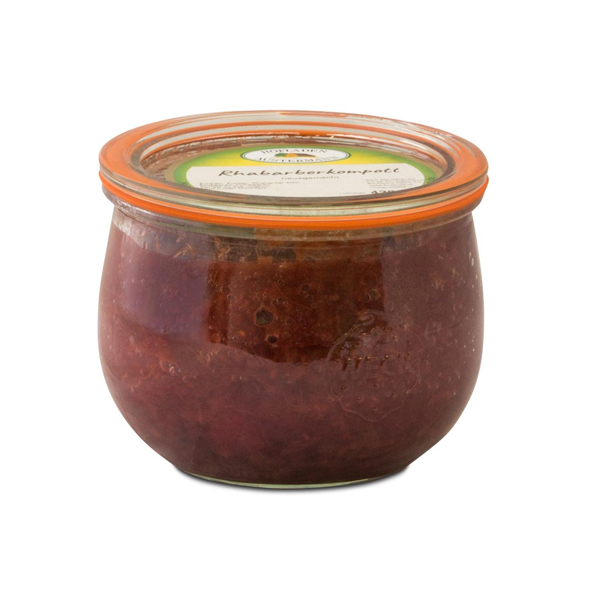 Rhabarber 53 %, Zucker, Erdbeeren, Himbeeren