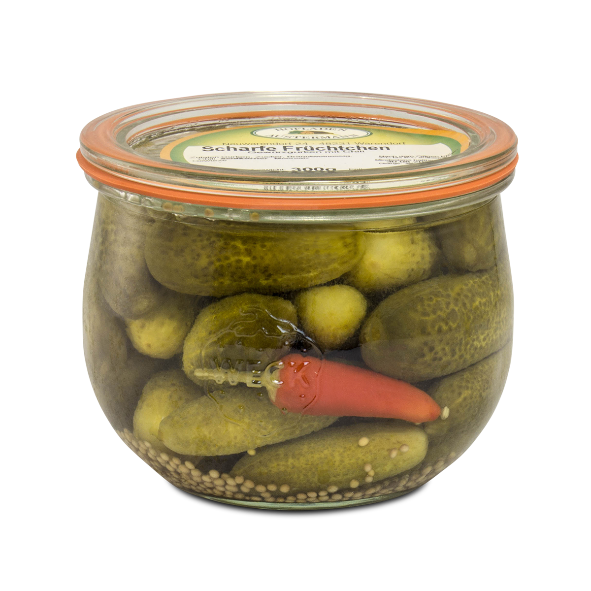 Durch die Zugabe von ganzem, frischem Chili erhalten die Gurken einen feinen, scharfen Geschmack.