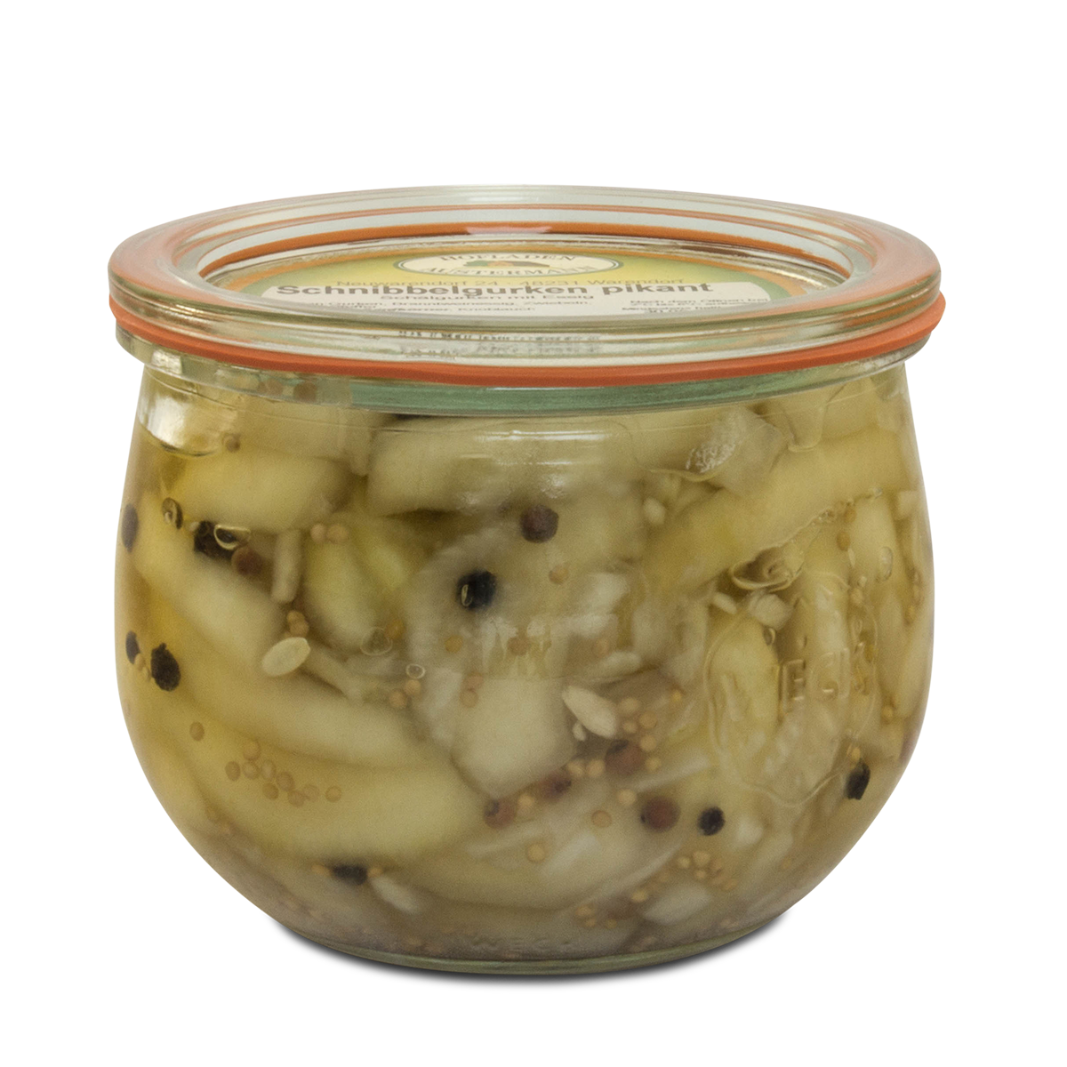 Die pikante Variante der Schnibbelgurken hat eine milde Schärfe, die durch Zugabe von Pfefferkörnern