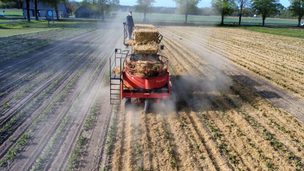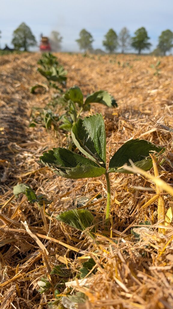Bei uns auf dem Hof laufen die Vorbereitungen für die Erdbeersaison bereits auf Hochtouren. Ein wichtiger Arbeitsschritt ist aktuell die Stroheinstreu zwischen den Erdbeerpflanzen.